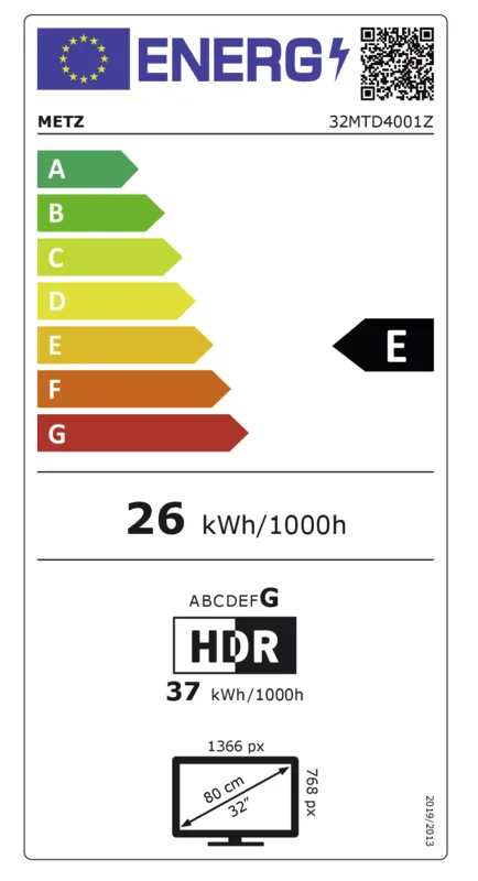 80 cm LED-Fernseher, 32 Zoll, Auflösung: 1.366x768 Pixel, H.265 HEVC, High Dynamic Range (HDR), High Dynamic Range (HDR 10 - HLG), 200 Hz Bildwiederholungsrate, Smooth Motion Rate, DVB-T, DVB-T2, DVB-T2 HD, DVB-S, DVB-S2, DVB-C, Dolby Digital Plus, 16 Watt maximale Gesamtleistung, SmartTV, USB-Recording, USB-TimeShift, Chromecast built-in, WLAN, Energieeffizienzklasse E